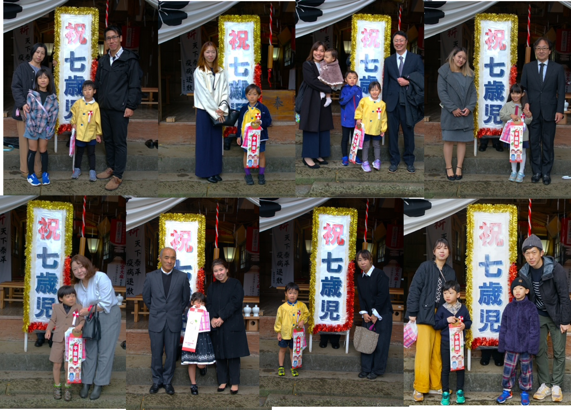 式では、内海守宮司による祝詞奏上、お祓いを受けるとともに、男子を代表して10組 小田有記様の子 小田直毅さん、女子を代表して3の1組 長田大悟様の子 長田柚葉さんに、玉串拝礼をしていただき、お子様の健やかな成長を祈願しました。