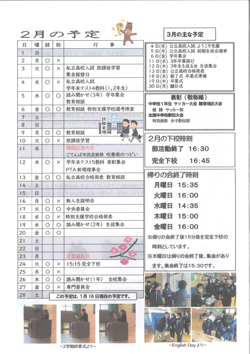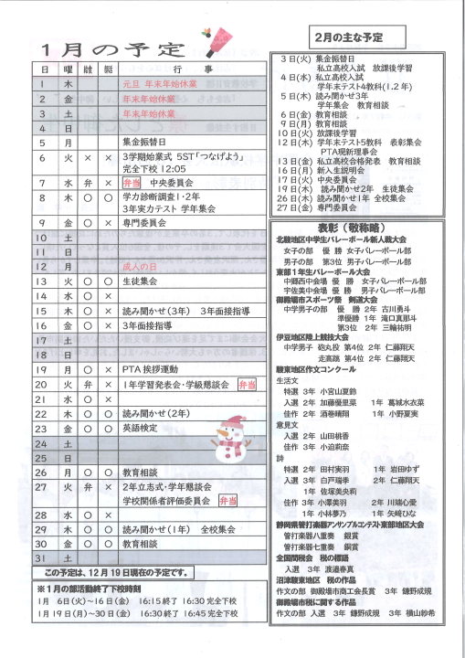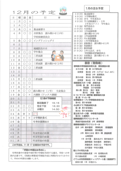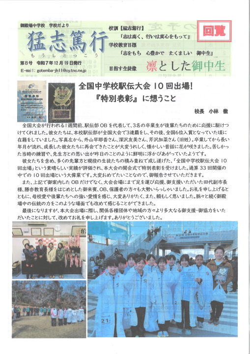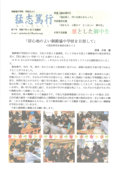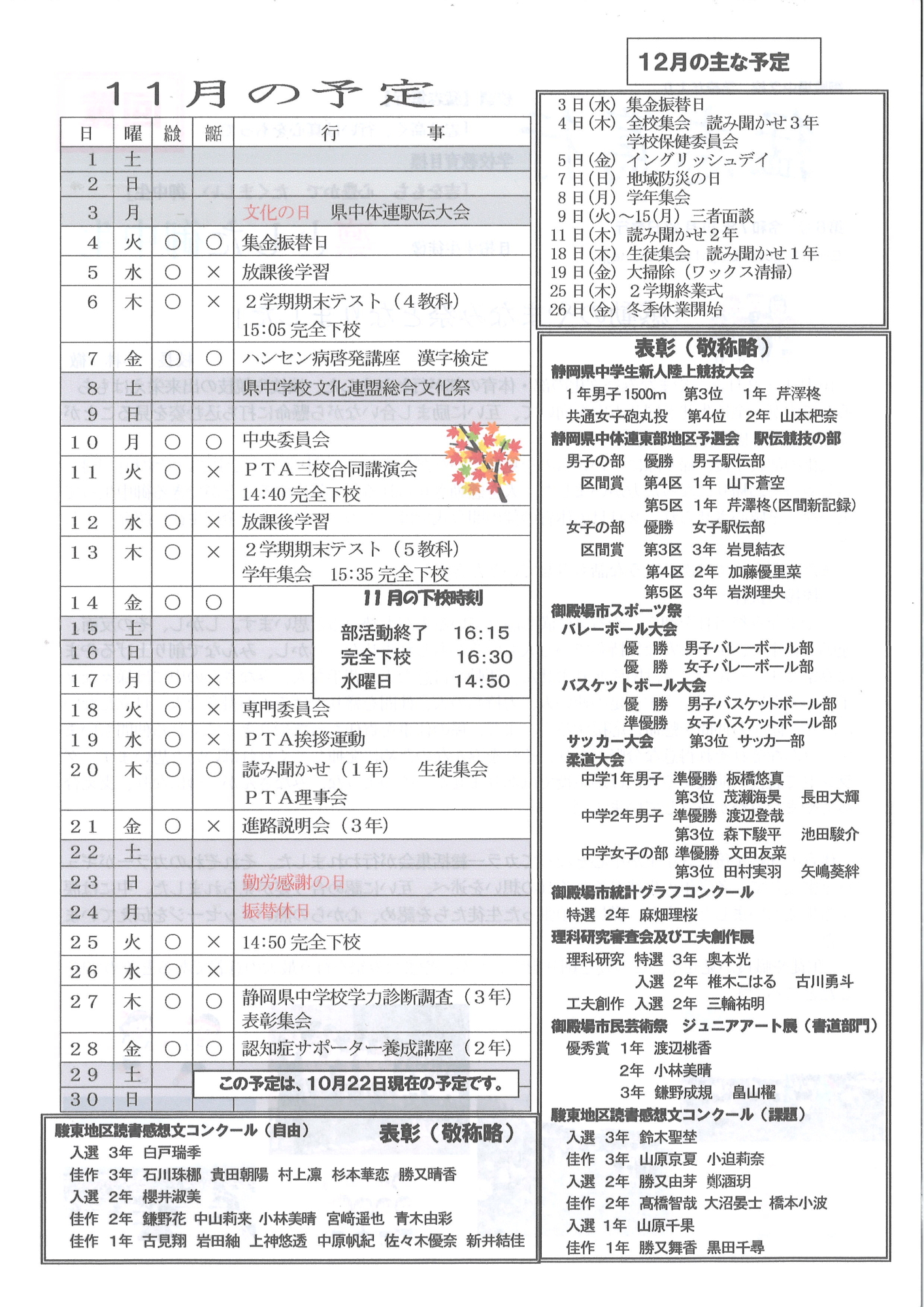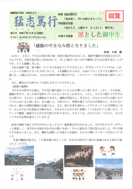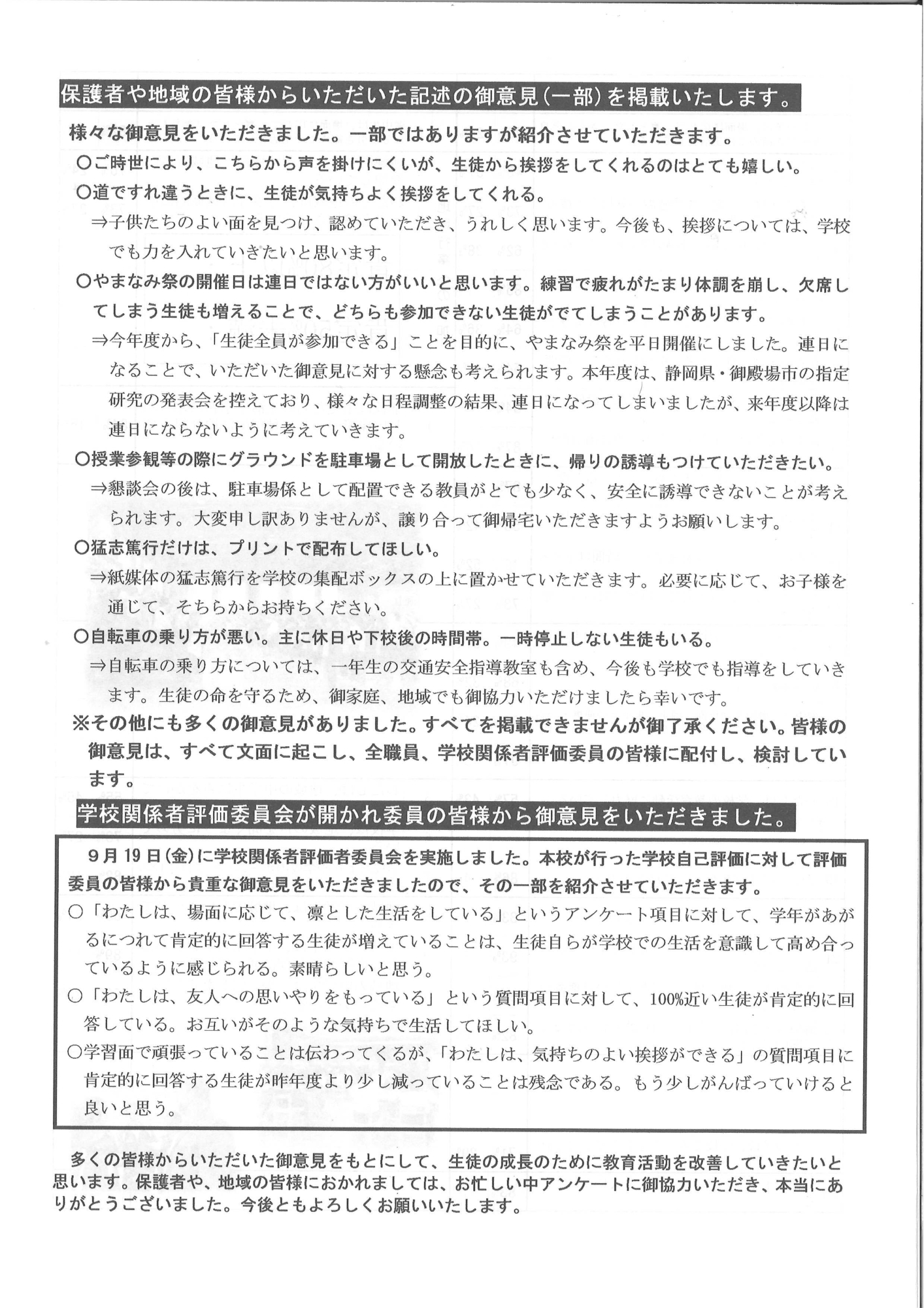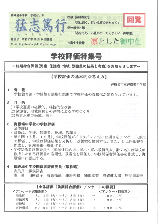 御殿場中学校学校だより 10月14日号 前期学校評価
