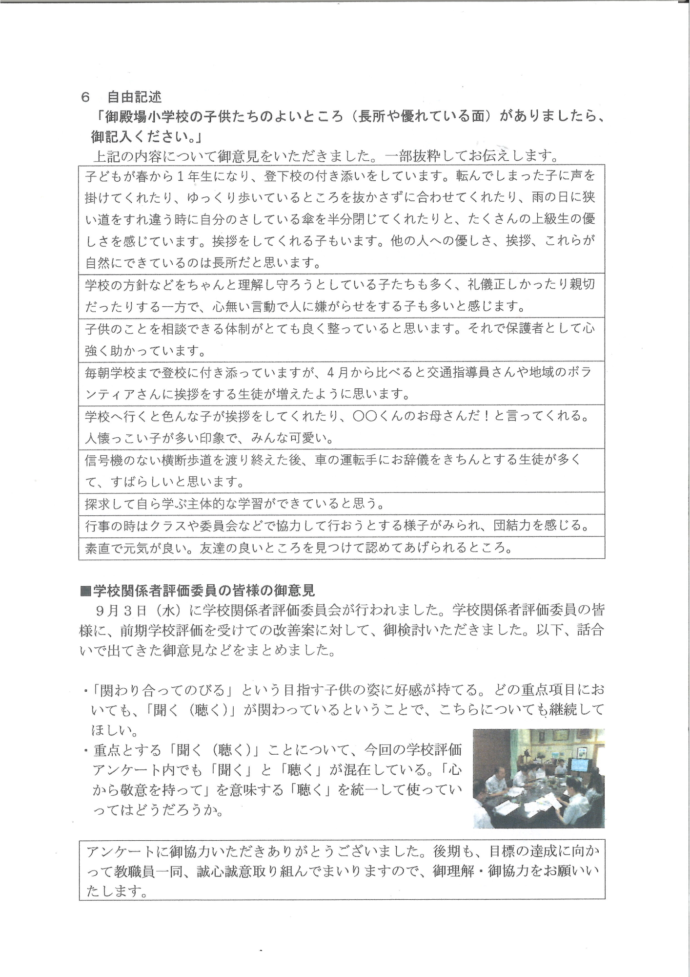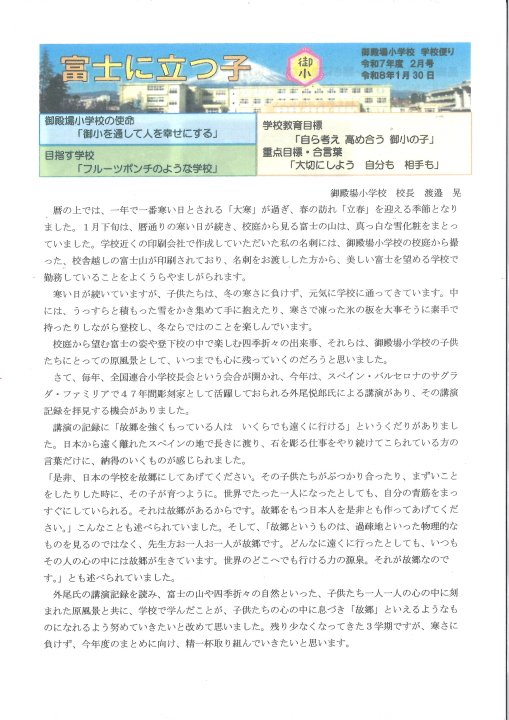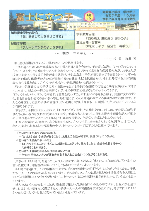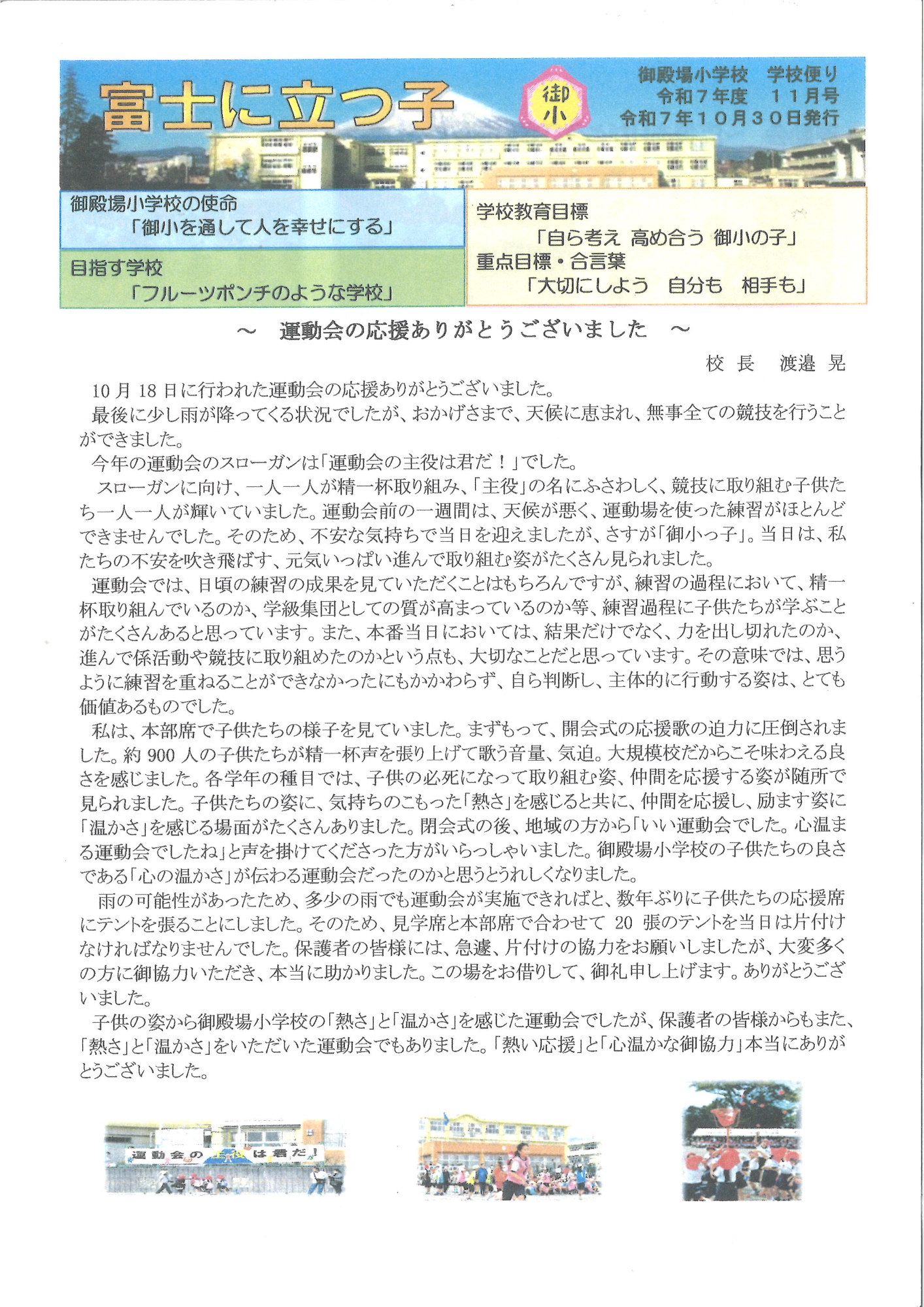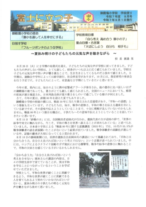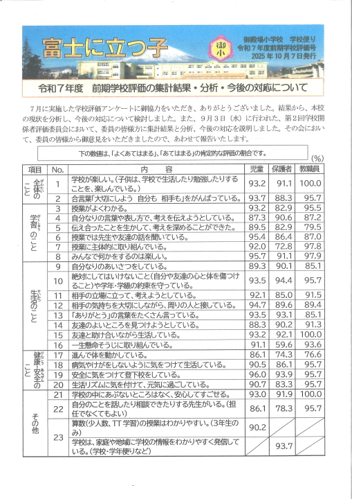 御殿場小学校学校便り 令和7年度前期学校評価結果等