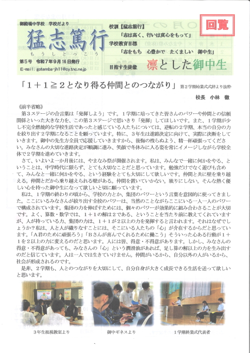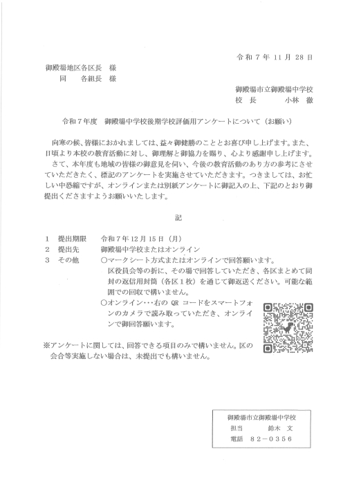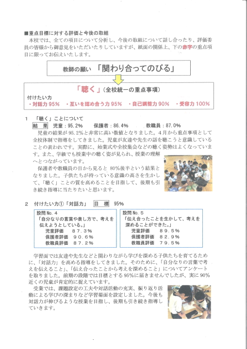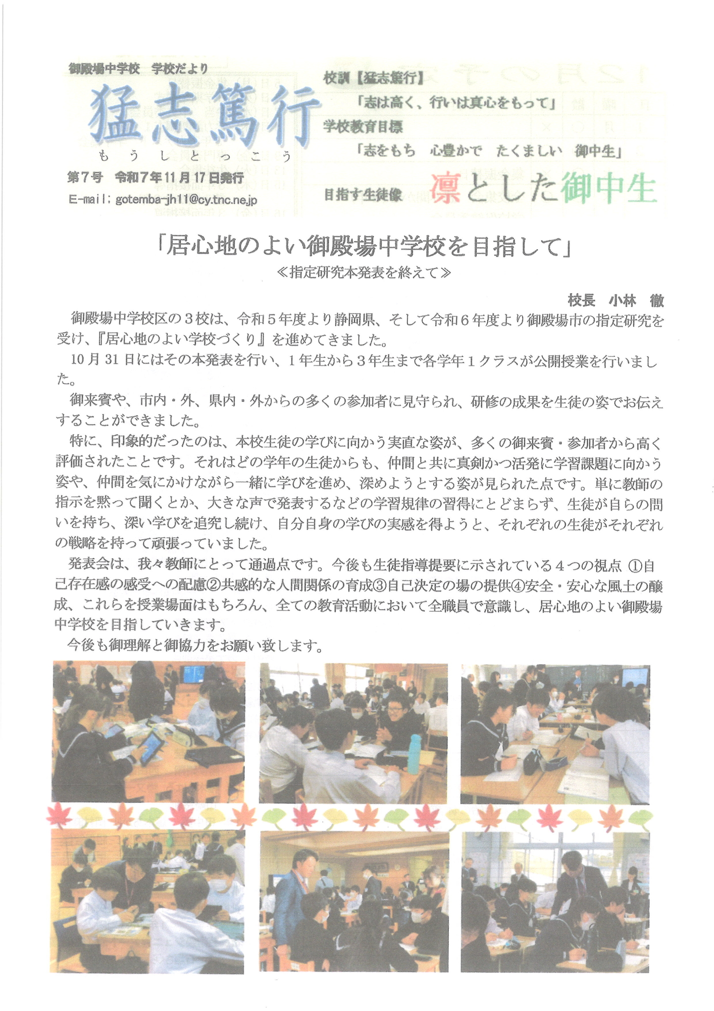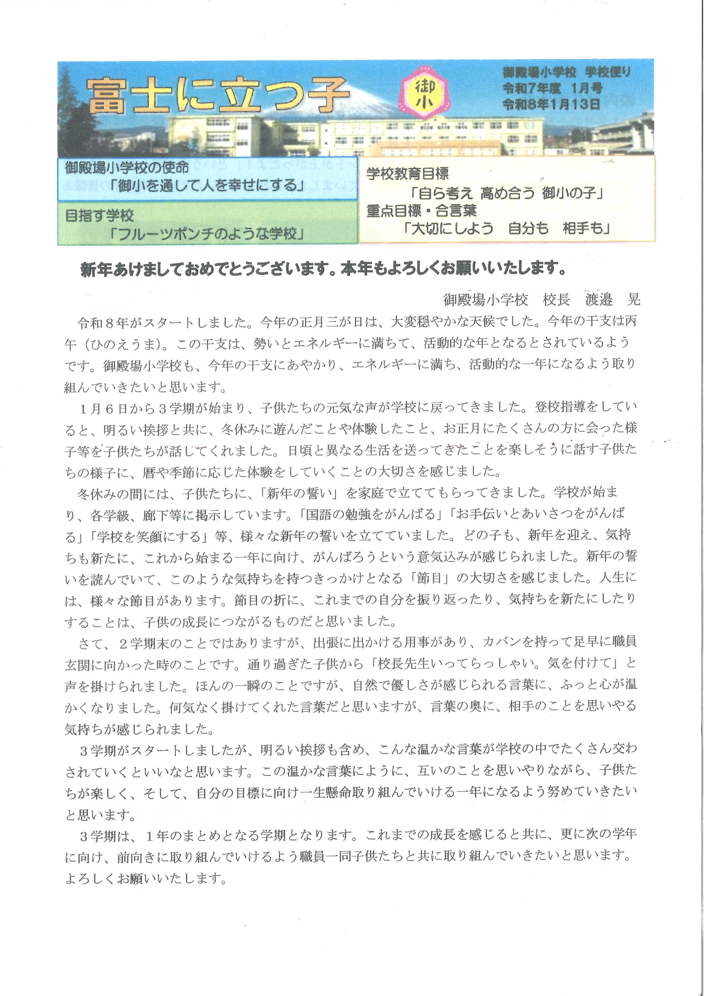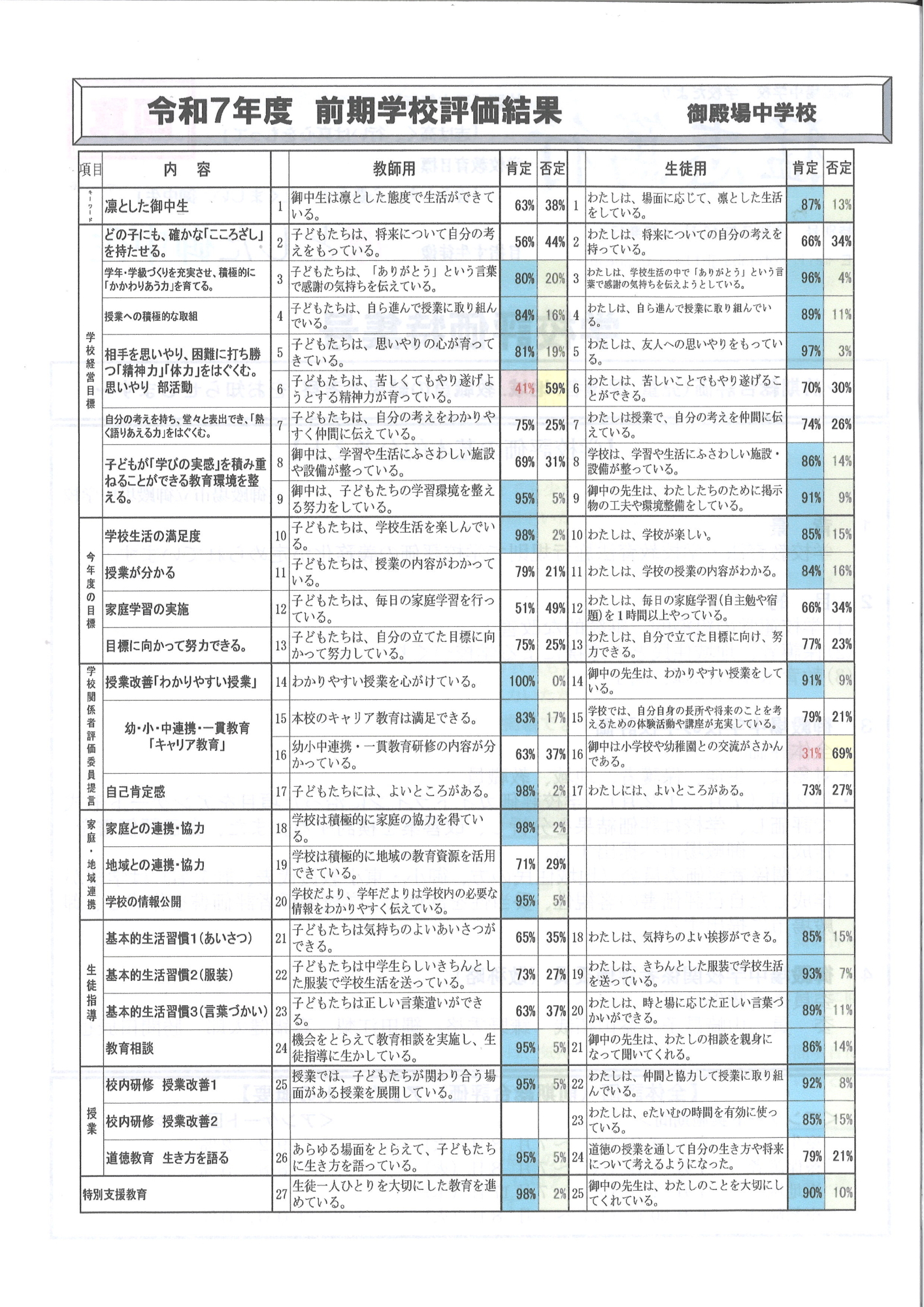 御殿場小学校学校便り 令和7年度前期学校評価結果等