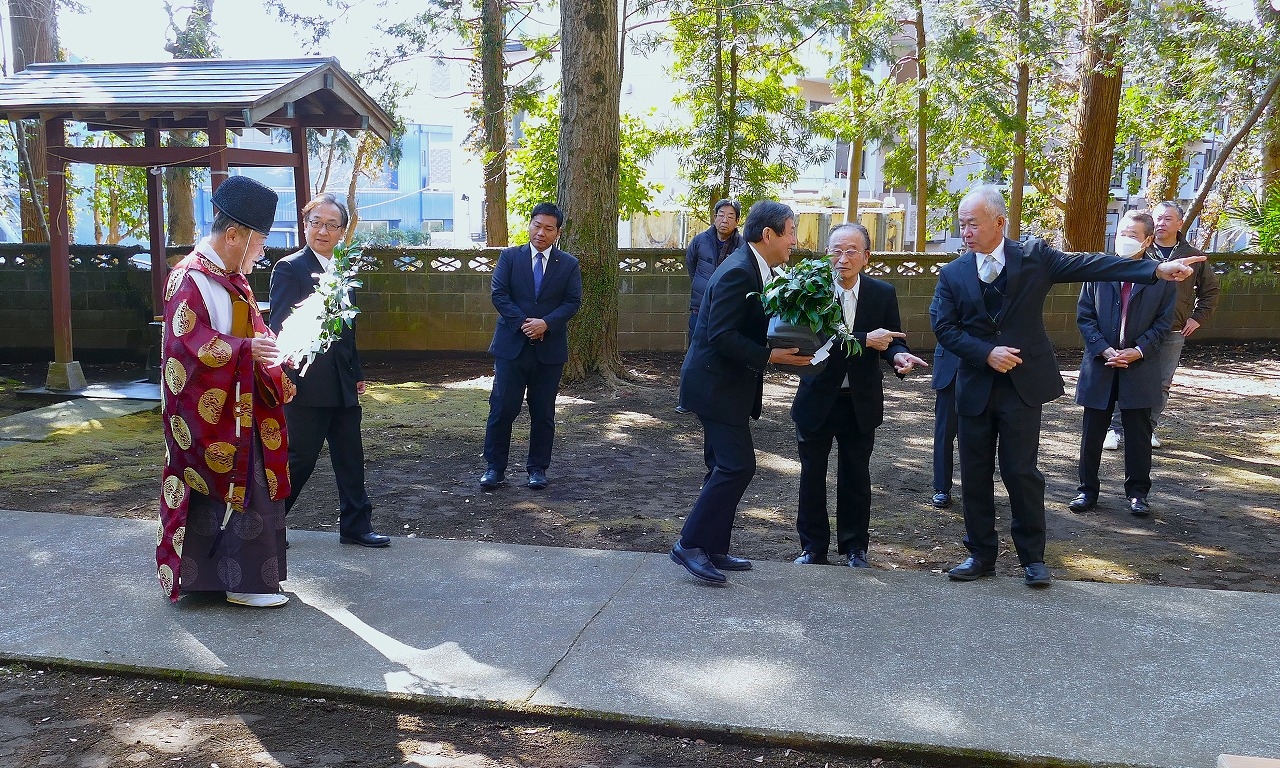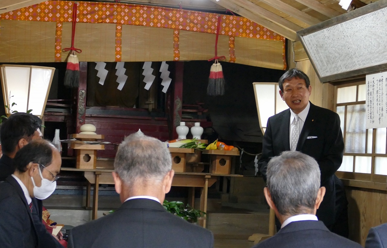 本日は、お忙しいところ、宮司 内海 守 様のていねいなご指導のもと、ご来賓の皆様にご臨席を賜り二枚橋区の祈年祭が実施できましたことに心より感謝申し上げます。
