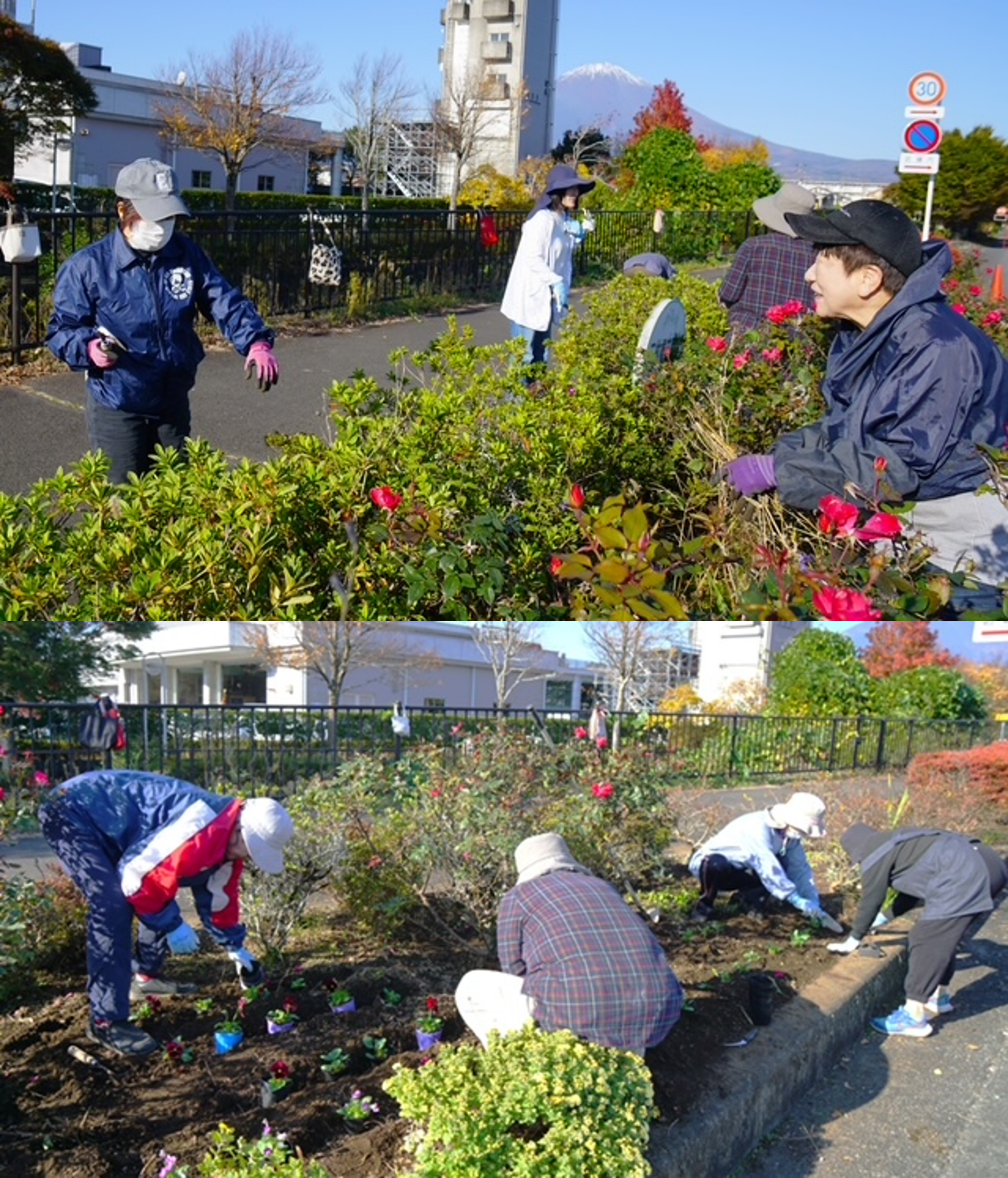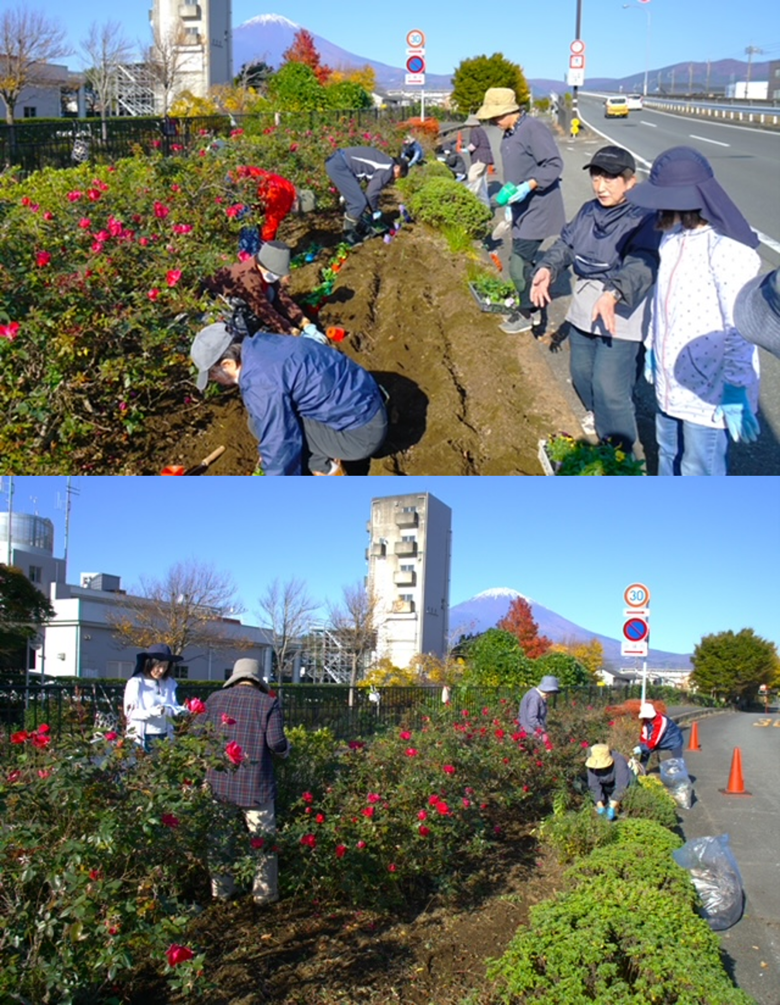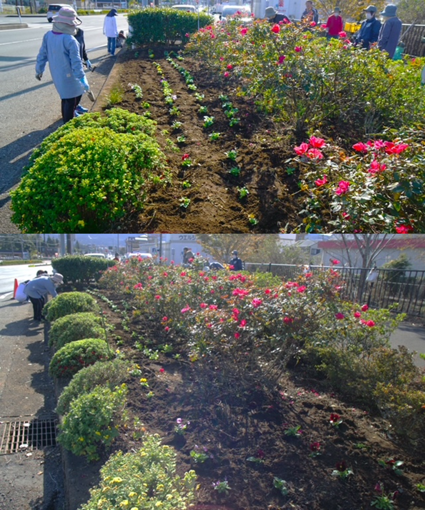 消防署入口の花壇の草取り、花植えを実施しました。